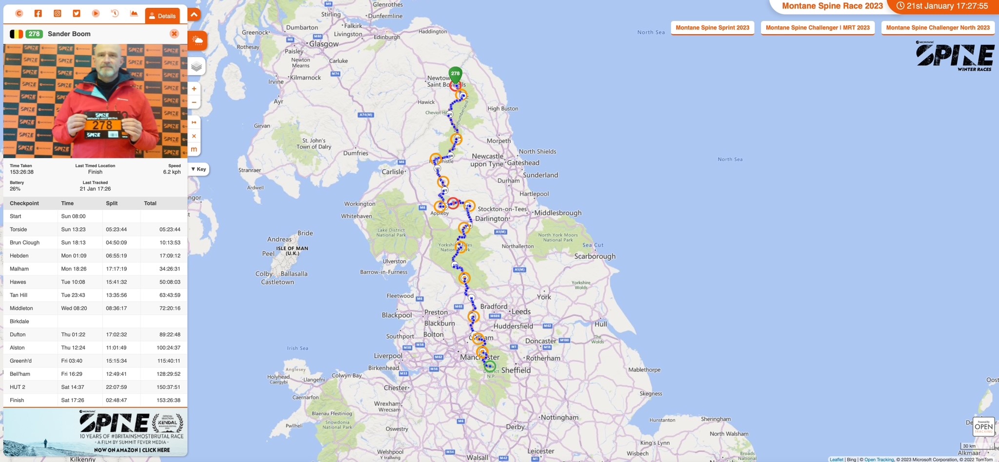 I absolutely recommend watching the daily race updates, all eight of them. Made by the Spine media team and published on Youtube. Really beautiful in all meanings of the word, with attention to all participants, fastest and slowest, impressive and pretty emotional at times, especially near the end: https://www.youtube.com/@SpineRace